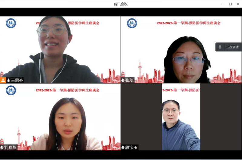 座谈会伊始,张蕊老师对同学们疫情防控期间的配合和支持表达了感谢,并详细介绍了本专业的课程设置、教学安排,着重强调了大学期间学好英语的重要性。张蕊老师殷切寄语学生:“希望同学们勇于担当,以‘预防人’的身份,践行守护人类健康的使命”。王思齐老师分享了她对预防医学专业的理解,她建议同学们在本科期间就要及时对自己进行评估并找机会进行社会实践,这样在面对毕业时的选择,心里才不会迷茫。王思齐老师的分享帮助同学们理清了自己对于未来学业、人生规划的构想。