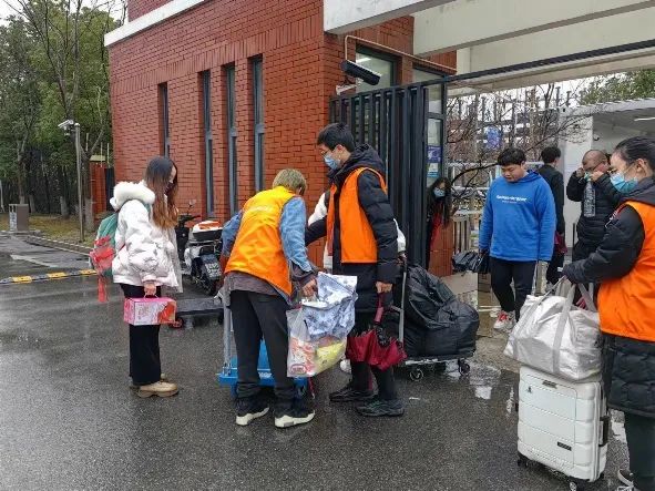 2023年2月12日迎来返校开学季。为保障学生春季开学返校工作圆满完成,引导同学安全有序返校,公卫学院组织了志愿者队伍,帮助有需要的同学搬运行李。