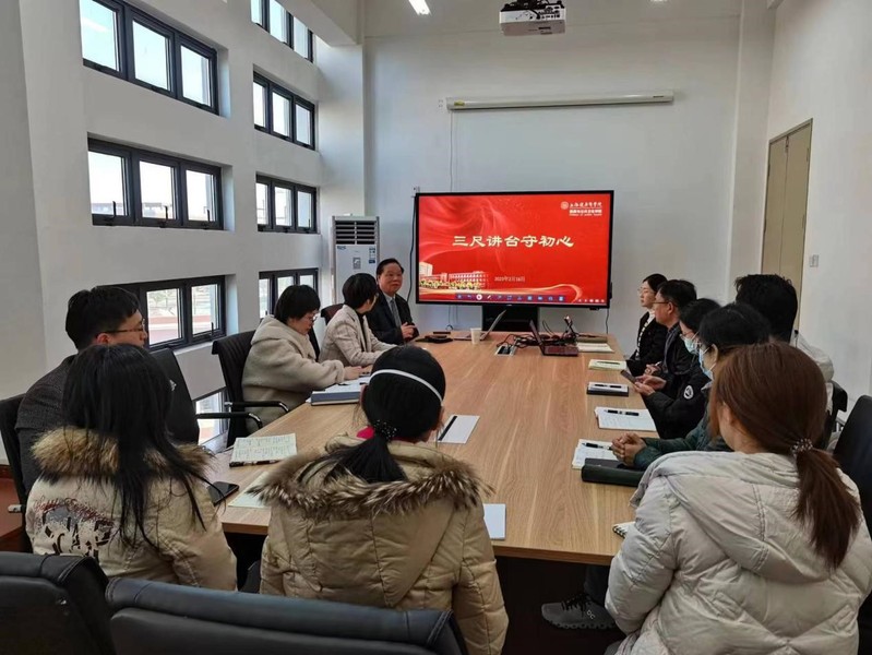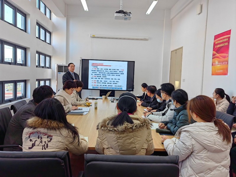为贯彻落实党的二十大精神,落实好立德树人根本任务,教师应当以高度的政治责任感和使命感责无旁贷地肩负起“排头兵”的光荣使命,让党的二十大精神走进课堂、融进教材、装进头脑。2月16日下午,万博max体育官方网站开展了一次理论学习与业务提升紧密相结合的政治学习,党总支特别邀请学校“教书育人楷模”荣誉称号获得者周进祝教授给学院全体教职工上了一堂别开生面的教师能力素养提升课,把党的二十大精神落实落细到教育教学工作当中,把学习成效体现在教师基本功的不断提升中。