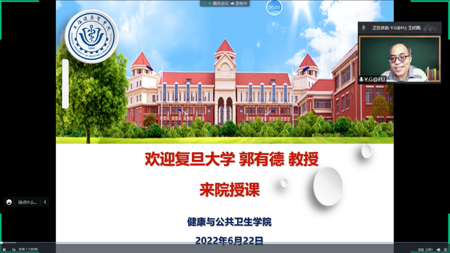 健康是人类永恒的追求,作为诞生于“健康中国”新时代的一所应用技术型本科医学院校,学校定位于“应用型、特色性、国际化”,以为新时代中国特色社会主义健康卫生事业发展培养高素质医学人才为己任。为提升学院教师科研水平,创造条件搭建科研合作平台,拓宽师生的视野, 6月22日14:00,万博max体育官方网站邀请复旦大学社会发展与公共政策学院郭有德教授线上开展学术讲座,2020级、2021级公共事业管理专业本科生,公共事业管理教研室教师等100余人参加了活动。