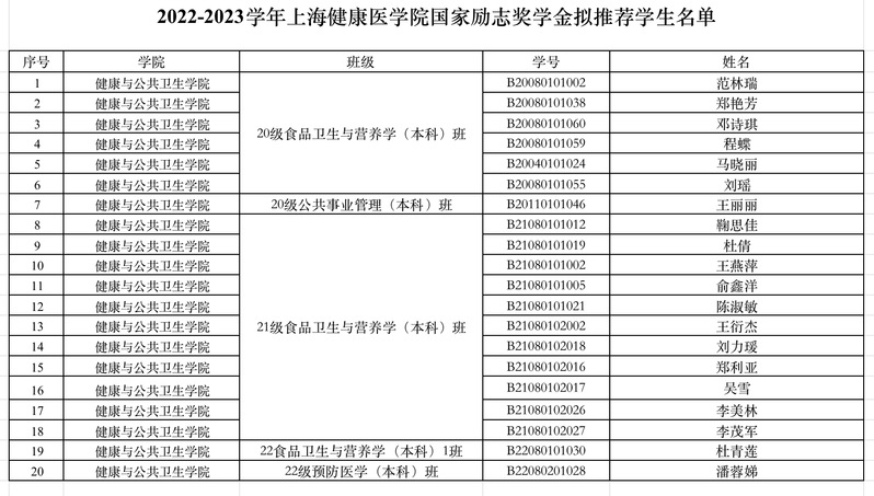 根据万博max体育官方网站学生资助管理中心《关于开展2022-2023学年国家奖学金、上海市奖学金和国家励志奖学金评审工作的通知》的文件精神,健康与公共卫生学院在前期宣传、学生本人申请、辅导员审核参评资格的基础上,经学院奖学金评审小组复审、民主评议和充分商讨,现将万博官网拟推荐国家奖学金、国家励志奖学金拟推荐学生进行公示。详细情况如下: