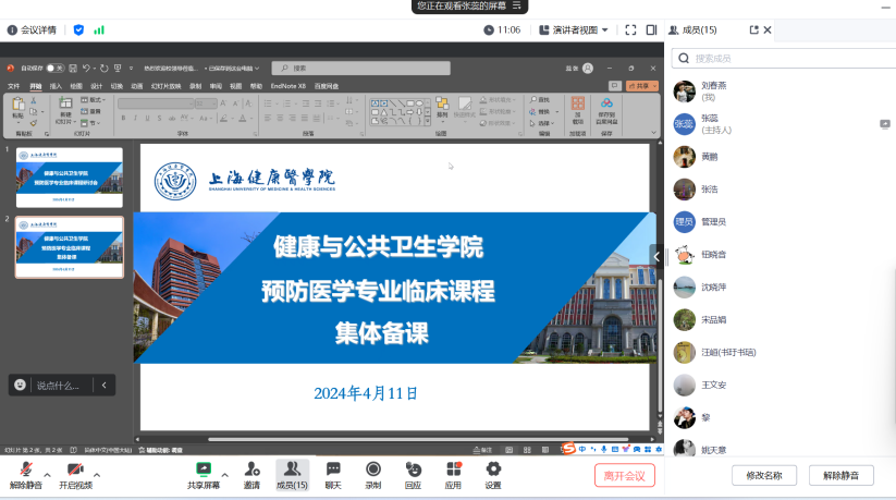 为了增强附属医院教师的教学能力和教学水平,提高预防医学专业教学质量, 2024年4月11日下午,附属崇明医院开展了预防医学专业临床课程集体备课活动。上海交通大学医学院教务处处长钮晓音、上海市同仁医院肾内科副主任朱鼎玉、万博max体育官方网站临床医学院专业主任李晨蕾作为专家出席了本次活动。崇明医院相关领导和教师团队、万博max体育官方网站预防医学专业相关教师等参加了此次活动。
