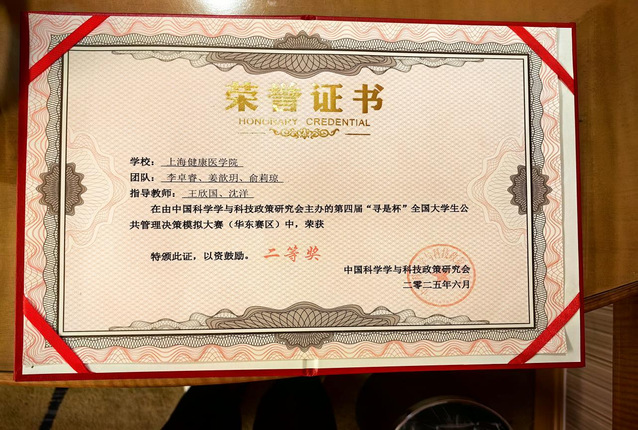 比赛过程中,3位选手沉着应对、默契配合。通过灵活应变,展现出过硬的实践能力。参赛选手李卓睿同学表示,对我们万博max体育官方网站的参赛队伍而言,参加“寻是杯”全国大学生公共管理决策模拟大赛(华东赛区)的征程,不仅是一场竞赛,更是一段满载成长与思考的宝贵旅程;与来自上海财经大学、上海对外经贸大学、南京医科大学、山东第一医科大学等46所高校的选手同台竞技,既是一次难得的学习与锻炼的机会,也展现了我校公共事业管理专业学子的优良素质与扎实能力,这次比赛让我们更加坚定了将专业知识学习与公共政策实践相结合的决心,我们将不断提升自己的专业素养和实践能力,努力为改善公共卫生状况、提高全民健康水平的公共卫生事业贡献一份力量。