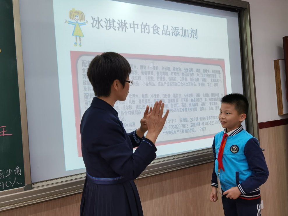 那立欣教授从儿童的视角切入,带领孩子们走进了“食空隧道”之旅。她深入浅出地给孩子介绍了食品添加剂在食品领域中的应用和作用,以案例的形式和孩子们一起分析了食品添加剂相关的食品安全事件,引导学生正确看待食品添加剂与健康的关系,帮助学生树立科学、合理的健康饮食观。在讲座过程中,那立欣教授与孩子们积极互动,孩子们反应热烈,认真参与讨论,收获满满。