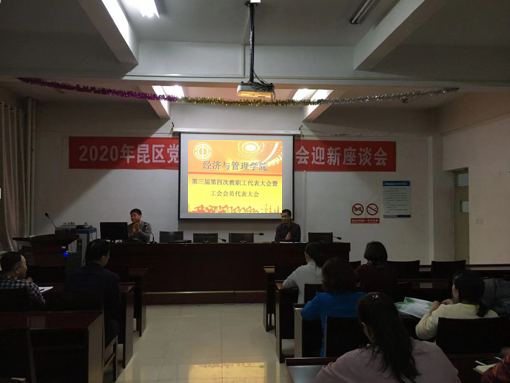 2019年12月30日,经管学院在腾飞楼A413召开第三届第四次教职工代表大会暨工会会员代表大会。本次大会共出席代表28人,审议通过了《院长工作报告》、《学院财务报告》、《beat365网页版登录入口2019年度年终业绩分配方案》、《工会工作报告》,并对会前征集的有关提案进行了回复说明。