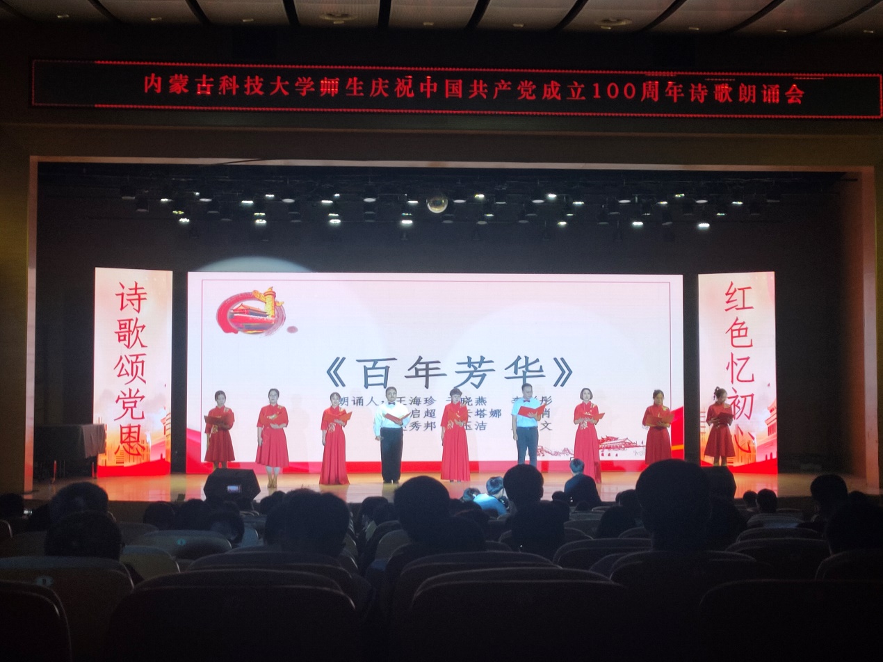 79日下午,beat365网页版登录入口师生庆祝中国共产党成立100周年诗歌朗诵会在学校礼堂举行。