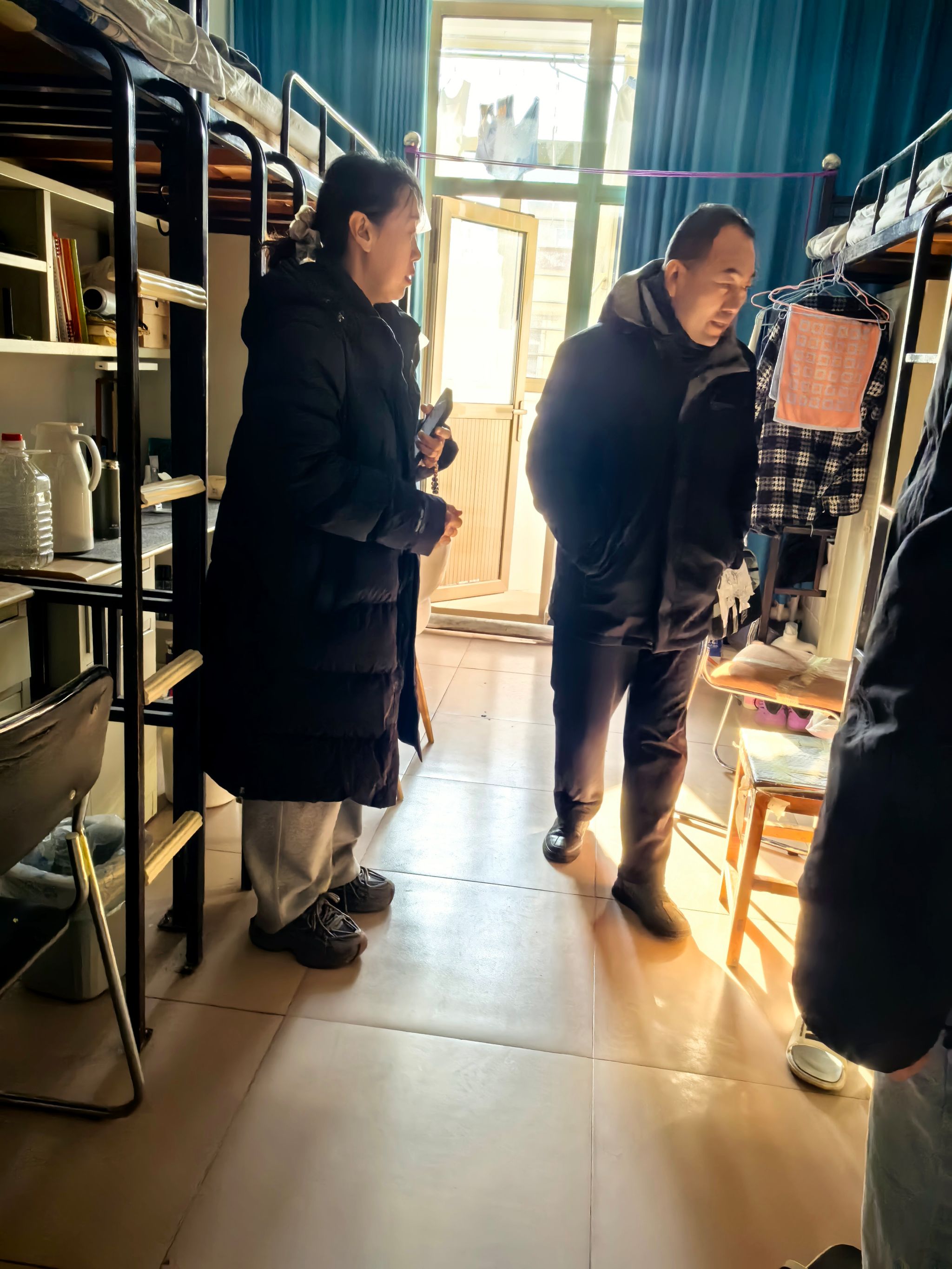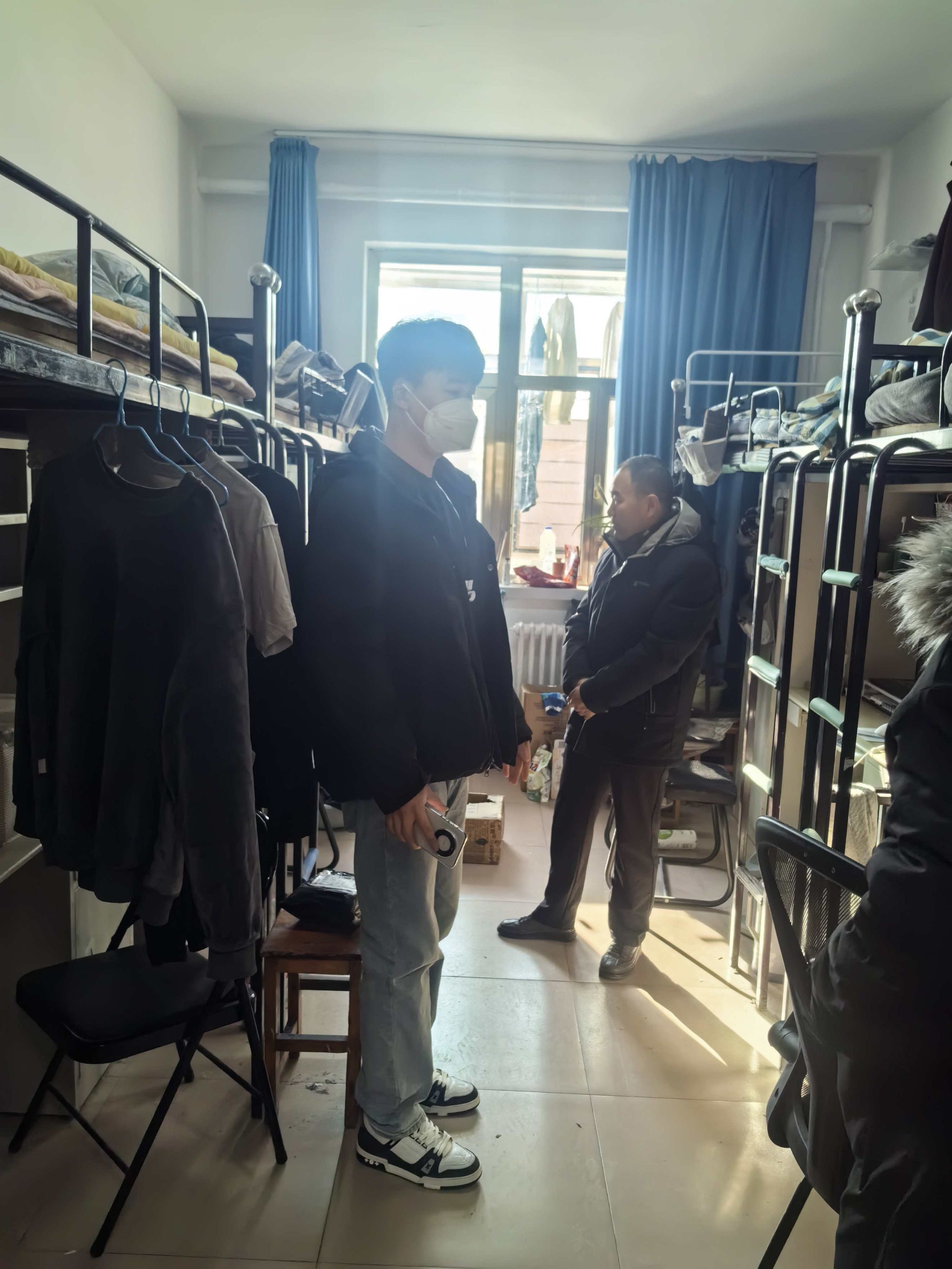 学院院长赵周华、辅导员王海珍、潘智辰及学院研究生会共同组成专项检查组,重点检查了学生宿舍中的安全隐患和内务卫生情况。