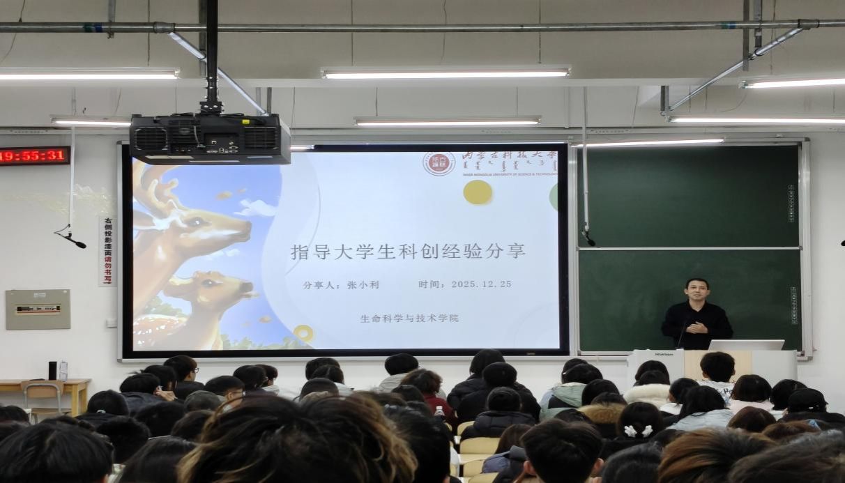 为精准把握中国国际大学生创新大赛(2026)备赛方向,提升学生参赛项目质量与竞争力,beat365网页版登录入口于2025年12月25日,在逸夫楼G301教室成功举办大学生创新大赛经验分享会。活动特邀生命科学与技术学院优秀指导教师张小利担任主讲嘉宾,活动由beat365网页版登录入口和创新创业教育学院联合举办,吸引了学院190余名师生参与。