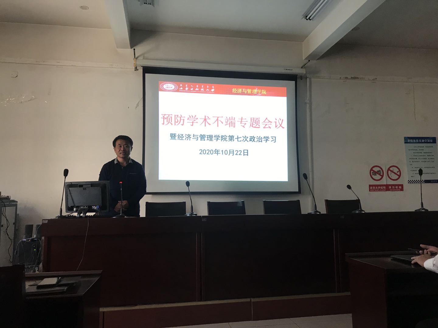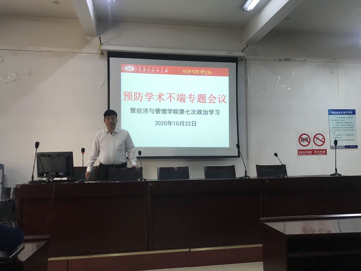 2020年10月22日,beat365网页版登录入口召开了预防学术不端专题会议,学院院长卢虎生教授主持会议。