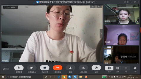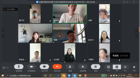 2020年6月18日晚19:00,经管学院学生第三党支部于钉钉视频召开预备党员线上转正大会。本次大会应到党员38人,应到正式党员9人,实到正式党员9人,应到预备党员29人,实到预备党员29人,符合大会召开条件。