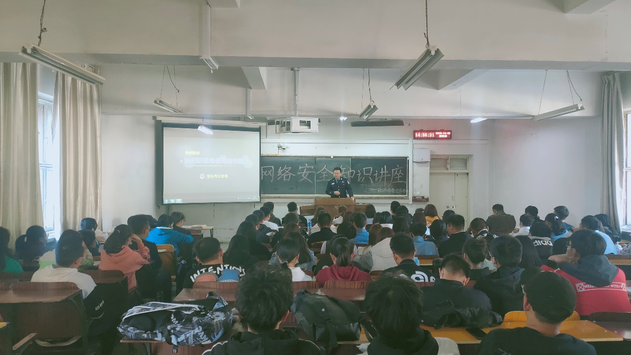 安全与我们的生活息息相关,2020级新生入学后,面临着各种各样的网络诱惑与陷阱,为使新生形成良好的网络使用习惯,树立良好的安全防范意识,拥有更加美好的校园生活,10月22日下午,beat365官网在主教D203举行了以校园防范电信网络诈骗为主题的安全知识培训讲座。此次讲座我们有幸请到了包头市公安局刘志强警官进行现场教学。本次讲座旨在增强新生的安全意识,进一步引导学生树立维护权益、提高防范诈骗的意识。