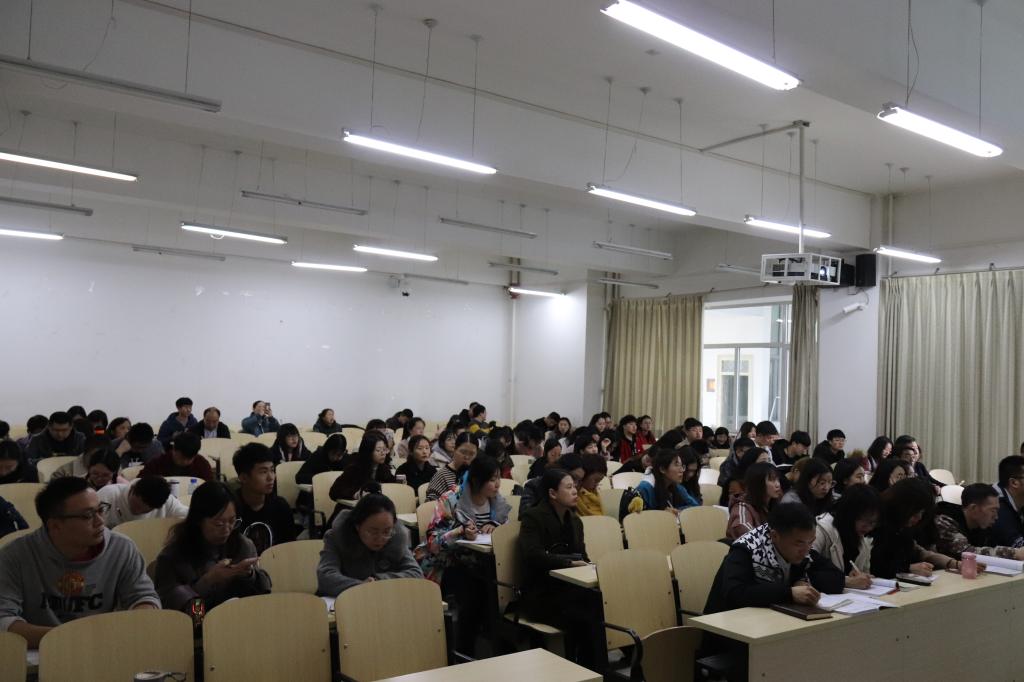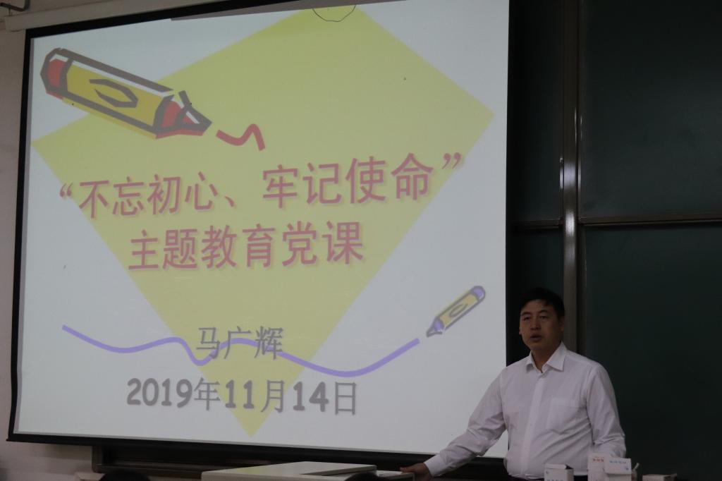 按照学校党委主题教育统一安排部署,2019年11月14日,beat365网页版登录入口党总支书记马广辉同志在逸夫楼G101讲“不忘初心、牢记使命”教育专题党课。