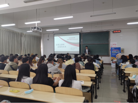 校内实习期间,金融学专业邀请恒泰证券包头公司走进校园,围绕当前证券行业热点话题之一的注册制,做了精彩纷呈的讲座。恒泰资深讲师以知识普及、新规则下机会发现为核心,培养了学生证券投资的热情。同时,金融学专业为学生提供了金融基础知识认识视频资料,由老师在学院机房带领学生集中观看、学习、体悟,打开了学生金融世界之旅。