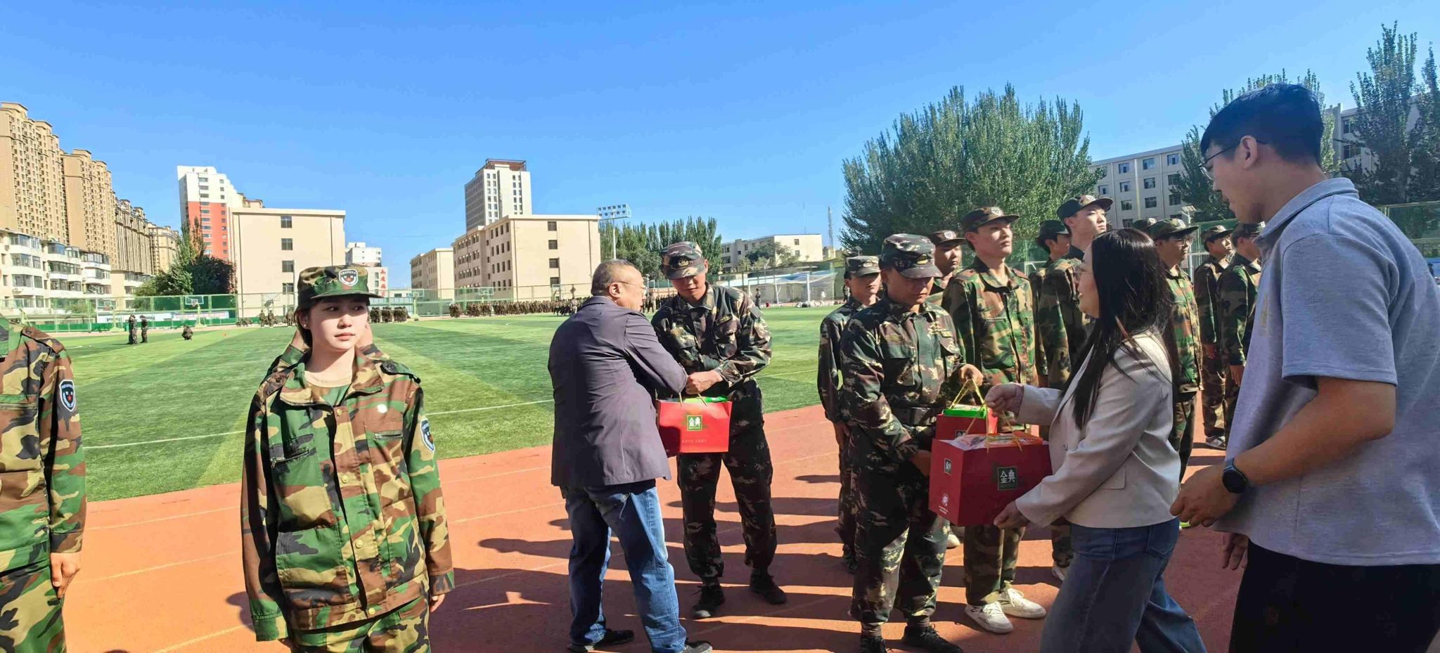 9月24日下午,学院党委书记张永强、副书记田芳、新生班主任及学工办辅导员一行深入军训场地看望现场军训师生,为刻苦训练的学子们送上学院的点赞与关怀,也对教官和教导员们在现场的默默付出予以肯定和支持。