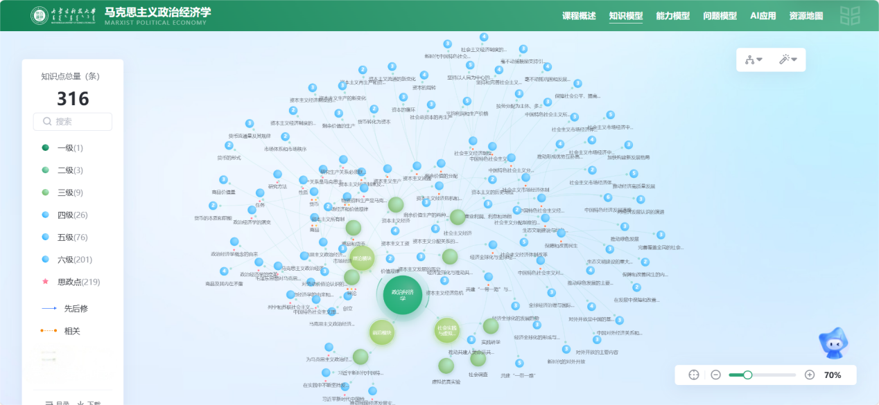 为深入实施教育数字化战略行动,推动人工智能技术与教育教学深度融合,学院政治经济学教学团队积极探索基于知识图谱与AI技术的智慧课程建设,高标准构建高质量智能课程体系。其建设成果——《马克思主义政治经济学》课程,已正式上线学堂在线平台并开放共享。课程数智化课程建设成效显著,成功打造了“AI+教育”背景下经济学教学的新范式。